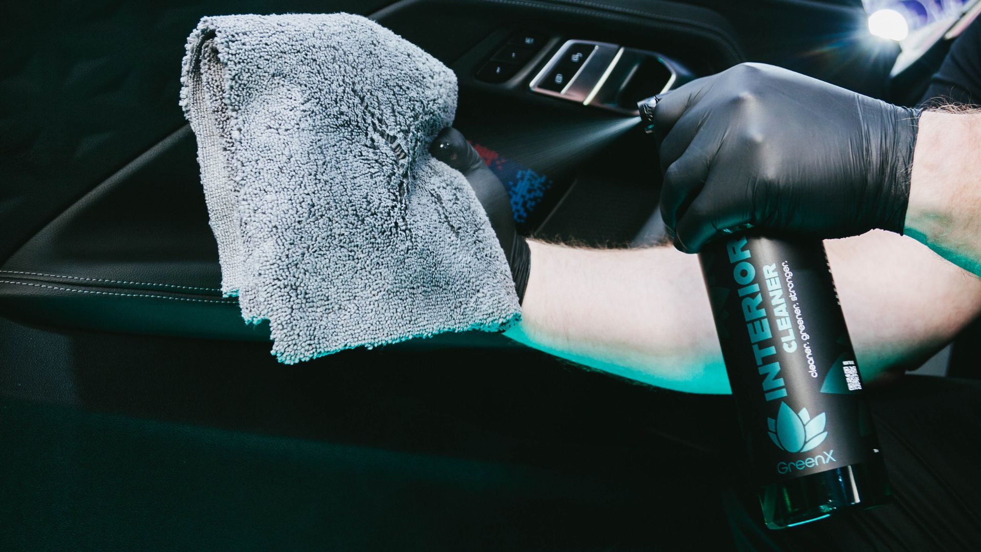 Aloita levittämällä GreenX Interior Cleaner suoraan tahrakohtaan.